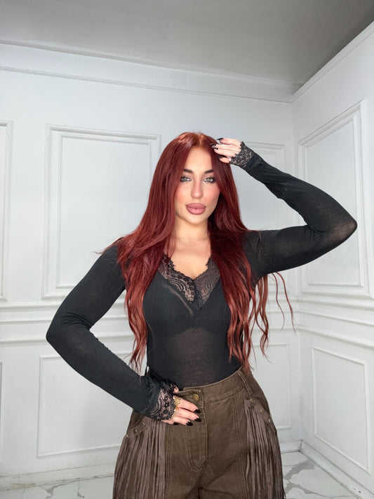 "Aggiungi un tocco di eleganza al tuo guardaroba con la maglia cashmir in pizzo super...