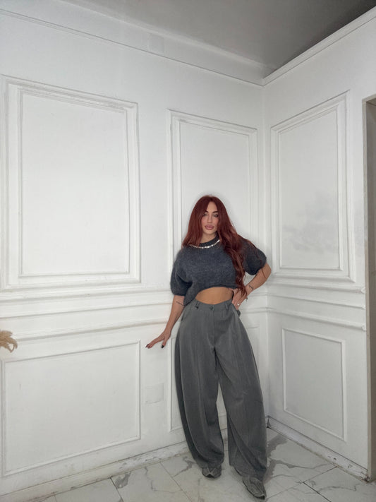"Add some playfulness to your wardrobe with our Pantalone Grey Ballon. This one-size-fits-all pantalone features...