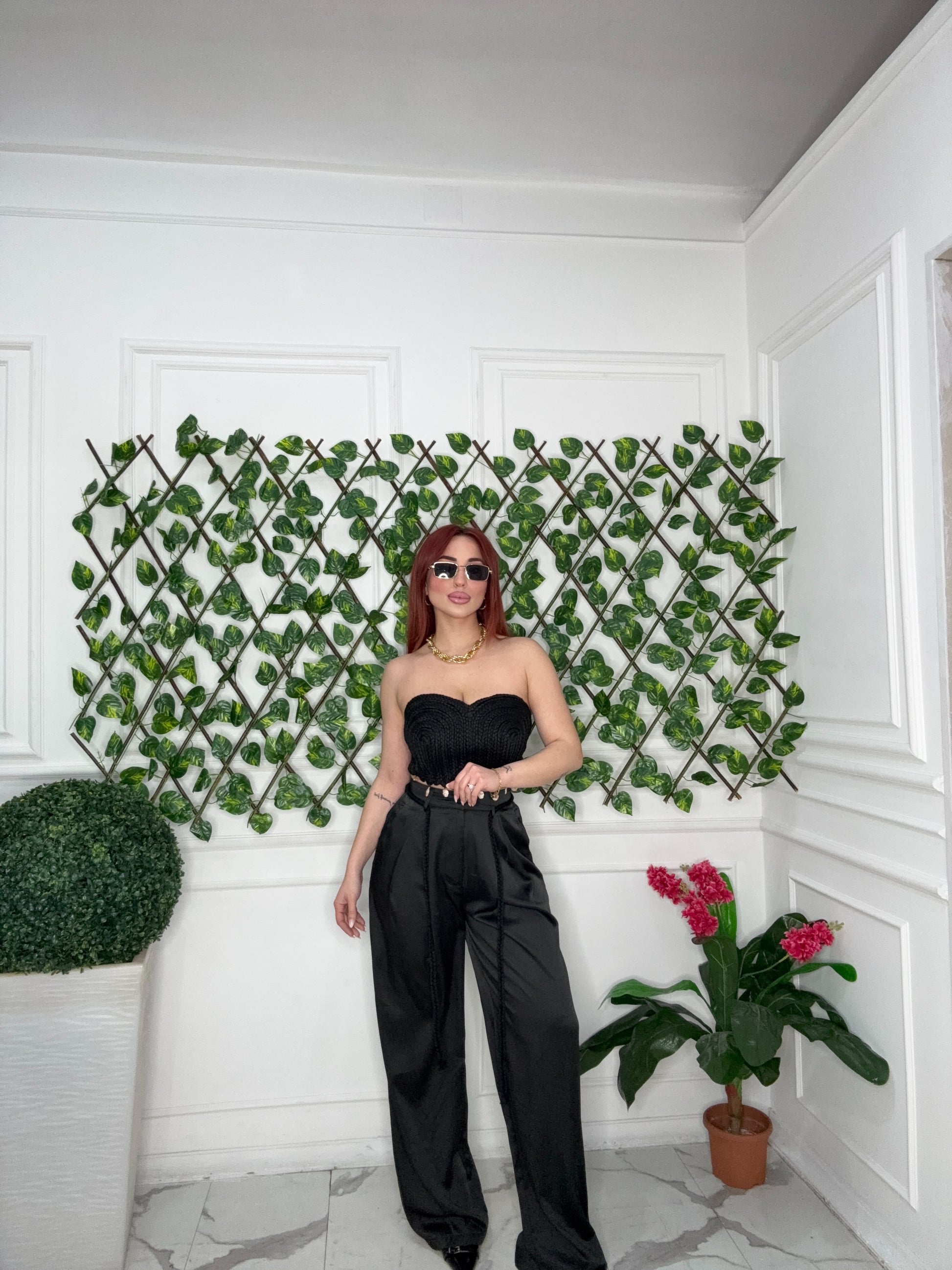 Coordinato con pantalone vita alta e top elasticizzato