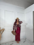 Vola via con stile con la Gonna Saiten Audry! Realizzata in saiten e decorata con pizzo, questa gonna ti farà sentire leggera come una farfalla. Aggiungi un tocco di eleganza e femminilità al tuo look con questa gonna unica.