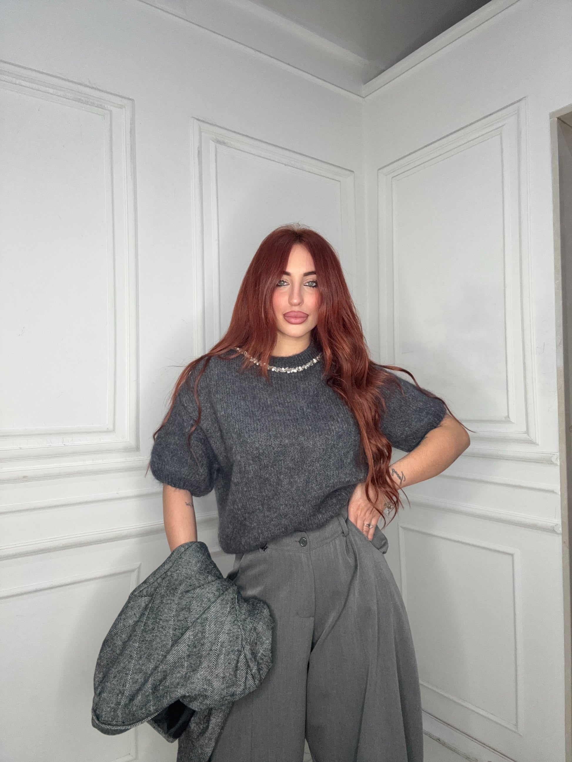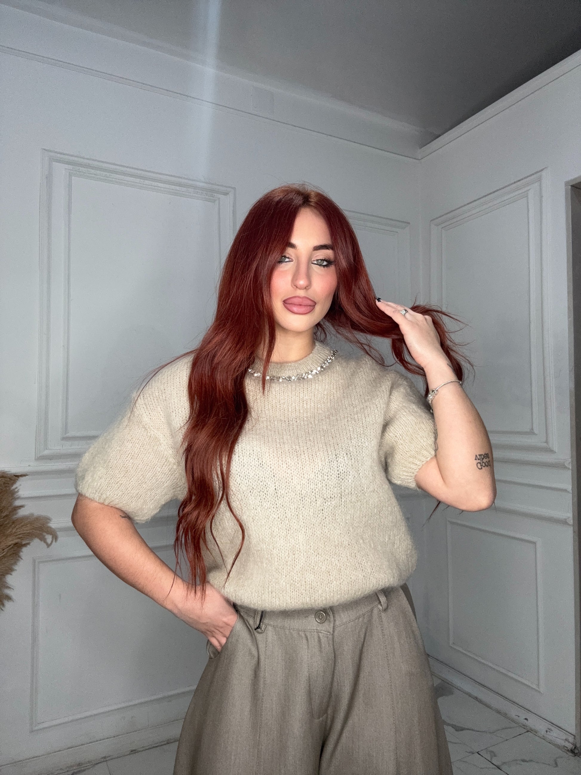 Aggiungi un tocco glam al tuo guardaroba con il Pull Brillantinii! Realizzato in morbida lana pettinata e con una mezza manica, è l'ideale per una serata fuori o per un look casual-chic. Comodo e trendy, non puoi farne a meno! (Solo per persone che sanno divertirsi!)